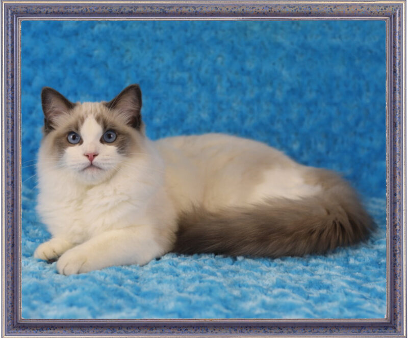 Regional Winner- 2023 best ragdoll kitten, 2023 best ragdoll cat, 11th best allbreed kitten, 9th best allbreed cat. TICA’s best seal lynx bicolor ragdoll of the year